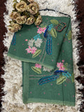 Ficuster Green Soft Organza Saree with Hand Embroidered Floral Applique and Sequin Work